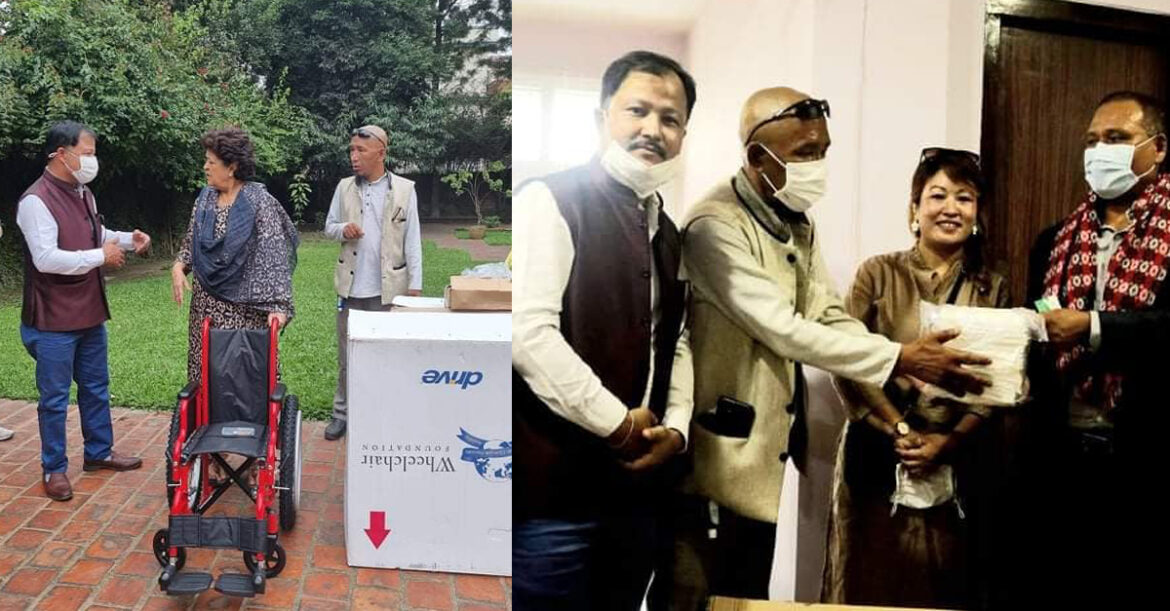 Left: Wheelchair and mask distribution to Sushma Memorial Hospital Right: Mask distribution to Kulman Ghising